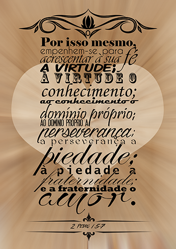 Que nossa fé seja repleta de virtude, dando-nos fome da Palavra que gera em nós vida e conhecimento, fazendo-nos controlar nossa própria carne a fim de perseverarmos até o final em piedade e fraternidade, transbordando o amor de Deus através de nossas vida.